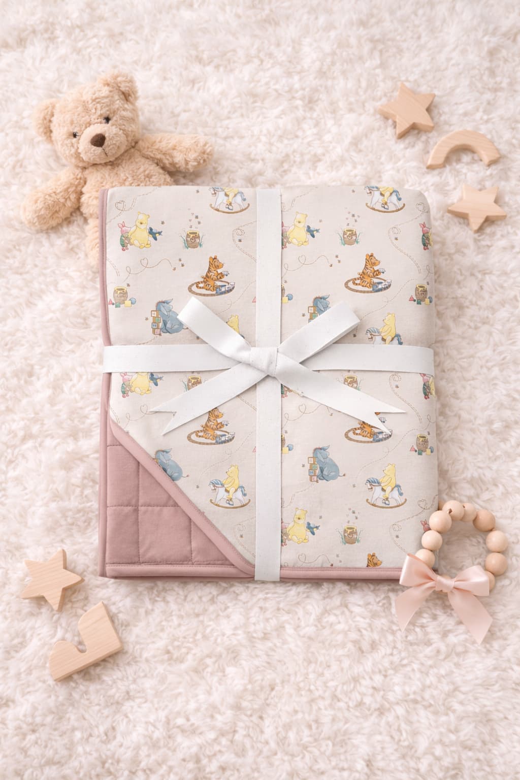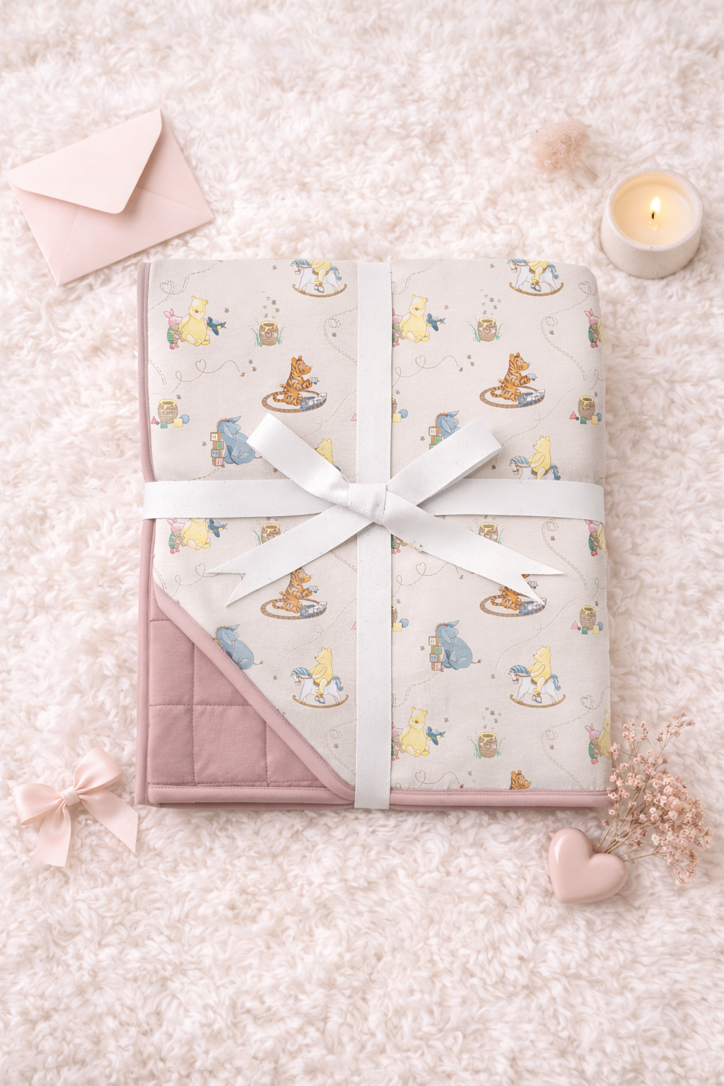 Classic Pooh & Friends Large Bamboo Blanket for Kids and Adults – Blush