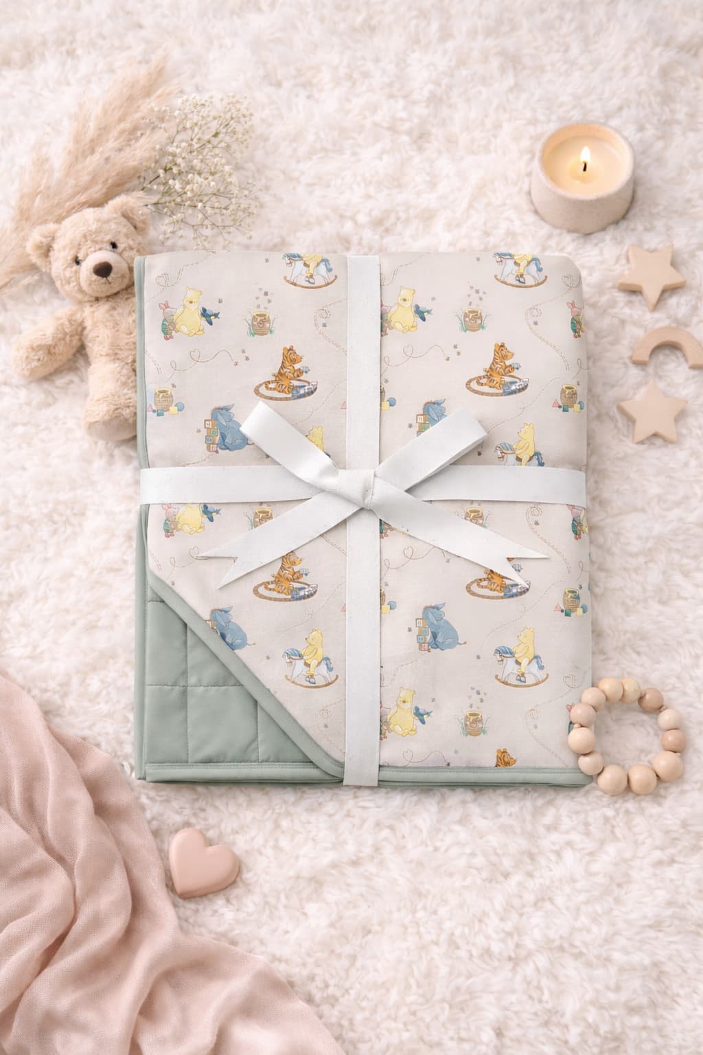 Classic Pooh & Friends Large Bamboo Blanket for Kids and Adults – Sage